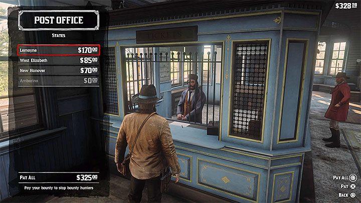 The first way to get rid of the Bounty is to pay the fine. You can visit any post office for this purpose. They are located at train stations. You have to talk to the person in the window and choose the option to pay the fine. You can only pay a fine for one state of your choice or for all those in which crimes have been recorded.