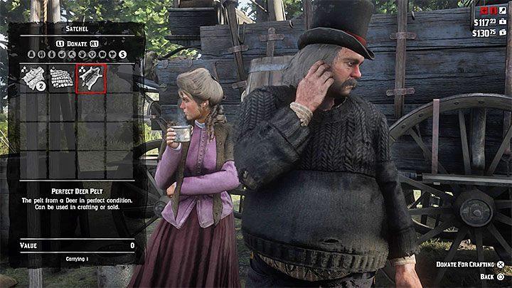 Perfect skins and leathers can be sold like any other, but it’s better to use them for crafting. First of all, you can return to the gang camp and give Pearson all perfect pelts. It will be put aside for Arthur’s bag improvements and to the gang camp upgrades. Many crafting improvements require the acquisition of a few pristine pelts of animals of a particular species, so look for more opportunities to find the perfect specimens.
