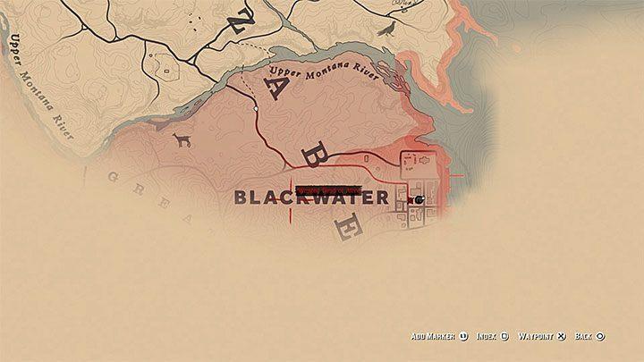 Blackwater and New Austin are located in the south-western part of the world map. These areas are marked in red and indicate that the main character (and all the rest of Dutch’s gang) is wanted there – dead or alive.