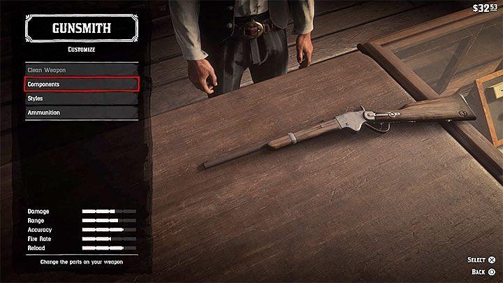 Speak with a gunsmith. Select the Customize option. After that you will open the Components menu.