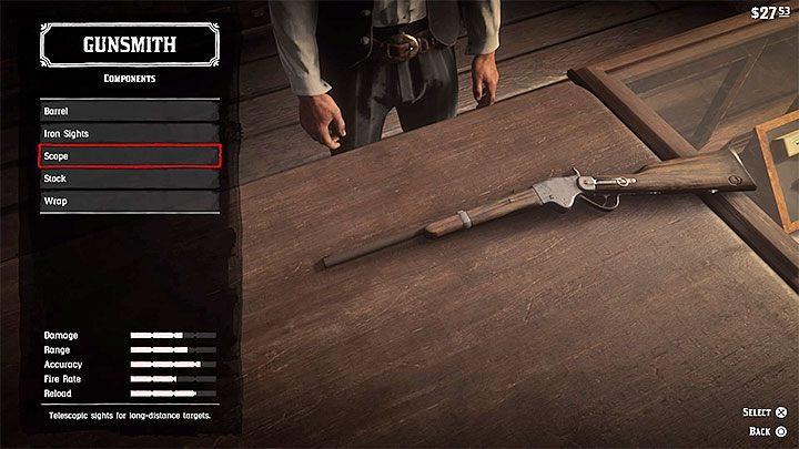Note – Scopes are installed separately for every weapon. You can be forced to, i.e. buy one scope for your favorite repeater rifle and one for your favorite carbine. Install a scope to get a sniper rifle.
