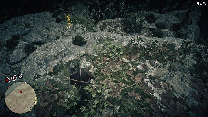 The bone is on the hillside, right next to the cliff. The bone looks like huge antlers.