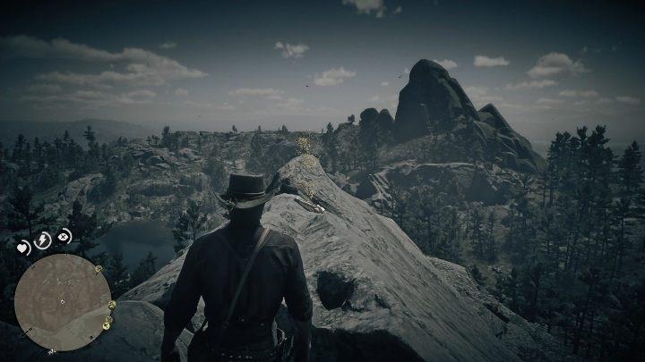 The bones aren’t covered by anything. They lie on top of the mountain, near the cliff.